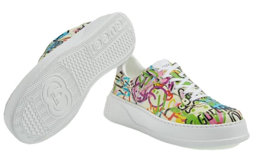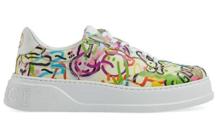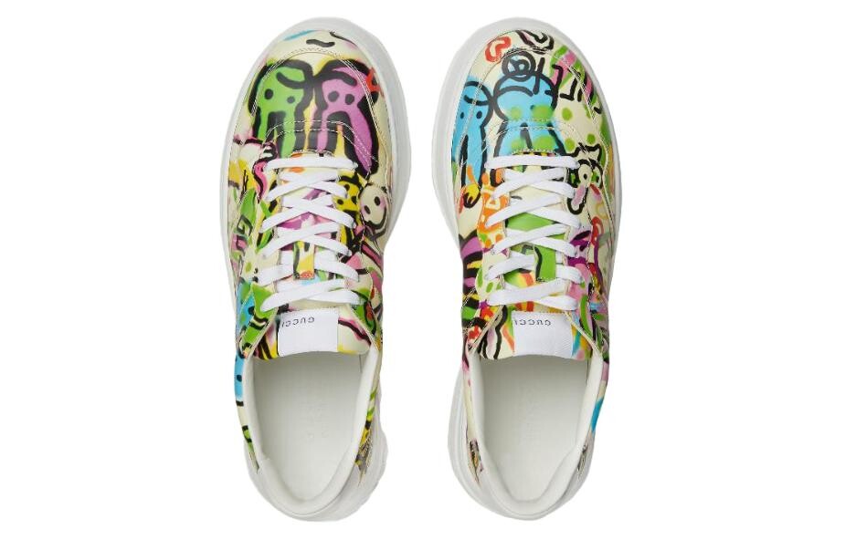 Кроссовки мужские Gucci Platform Trainer с принтом, бело-желтый