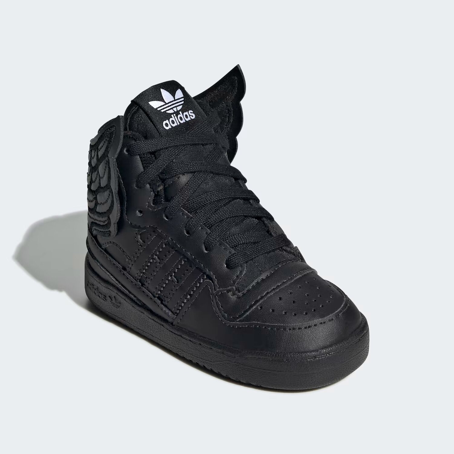 Позвольте своему малышу парить. Новейшая итерация культового крылатого дизайна дизайнера Джереми Скотта, эти кроссовки adidas Forum для новорожденных демонстрируют крылья, направленные вперед, и придают им неожиданный вид. Верх из зернистой кожи премиум-класса и резиновая подошва позволяют маленьким ножкам быть одетыми в стиле B-ball.