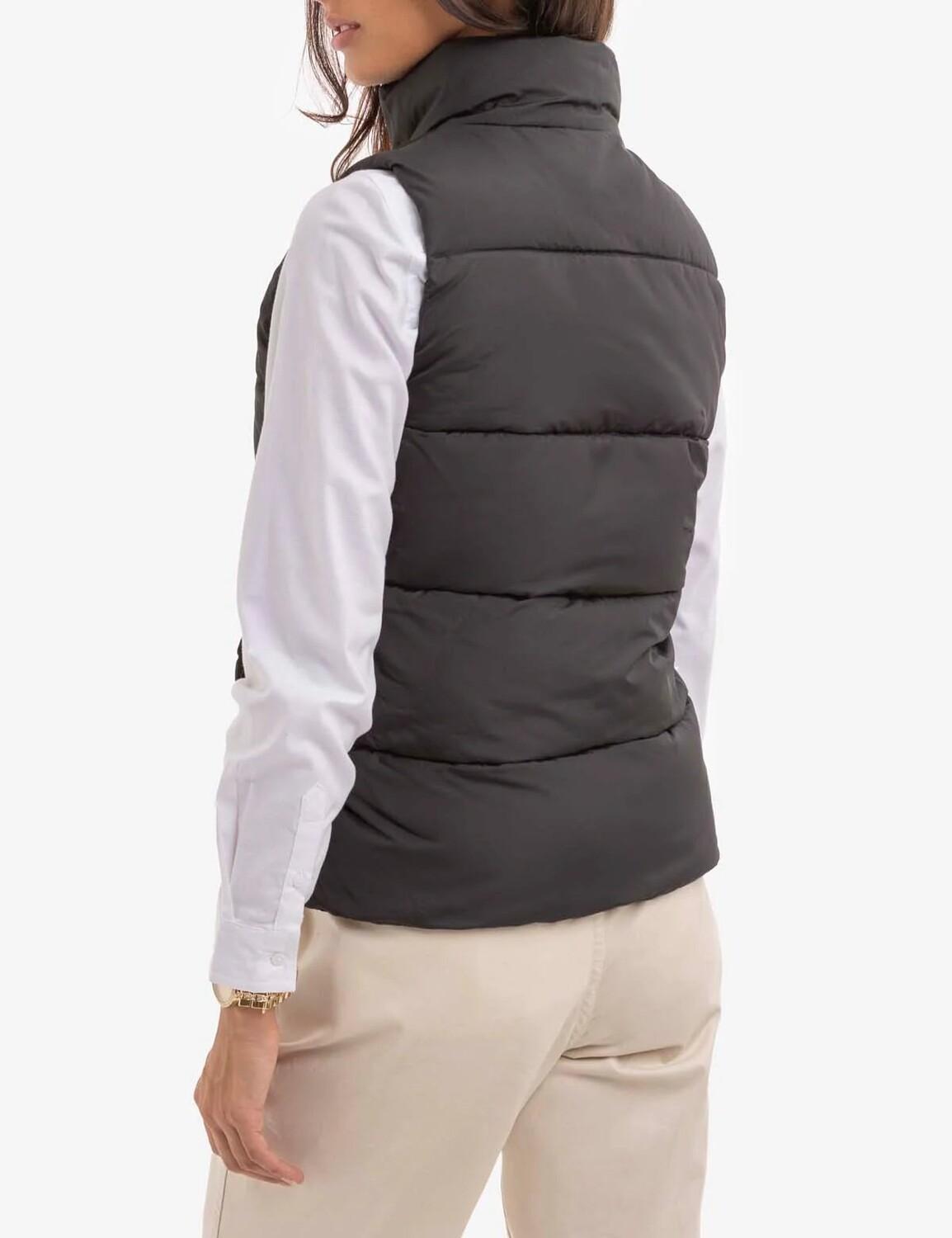 Короткий женский жилет без рукавов.