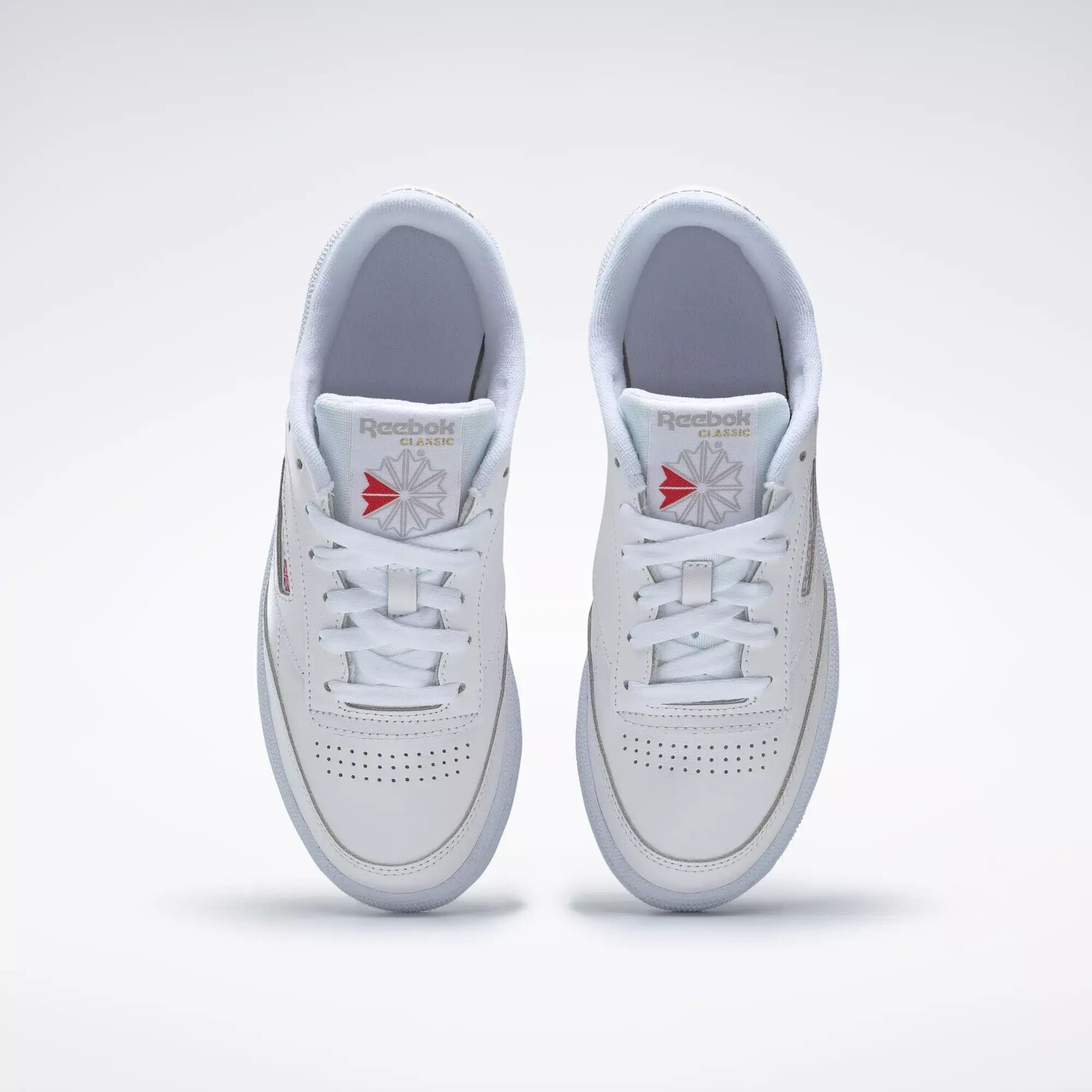 Нет ничего лучше свежих белых кроссовок, и Club C 85 — это оригинал. Чистая белая кожа сохраняет актуальность этой женской обуви и подходит к любому модному образу. Прочная подошва сохраняет внешний вид, а классический логотип сбоку отдает дань уважения нашим корням.