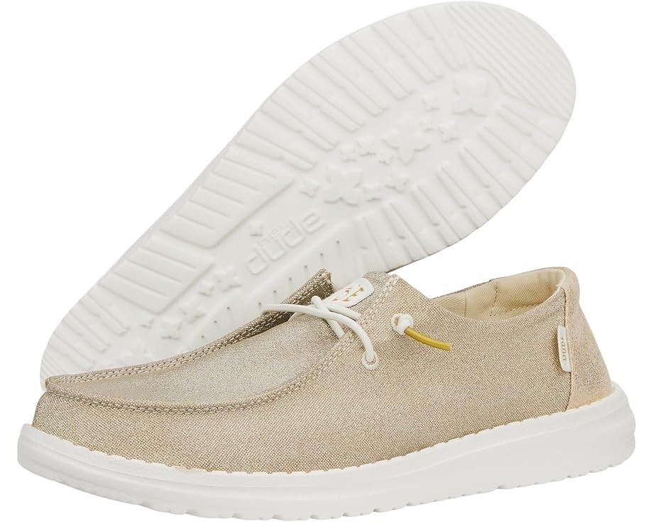 Испытайте непревзойденный комфорт, надевая Hey Dude Wendy Metallic Sparkle! Эти туфли с текстильным верхом и подкладкой оснащены съемной мягкой стелькой из пены с эффектом памяти и супинатором для максимального комфорта и контроля запаха. Закругленный носок и технология Flex & Fold обеспечивают здоровым ногам свободу движений.