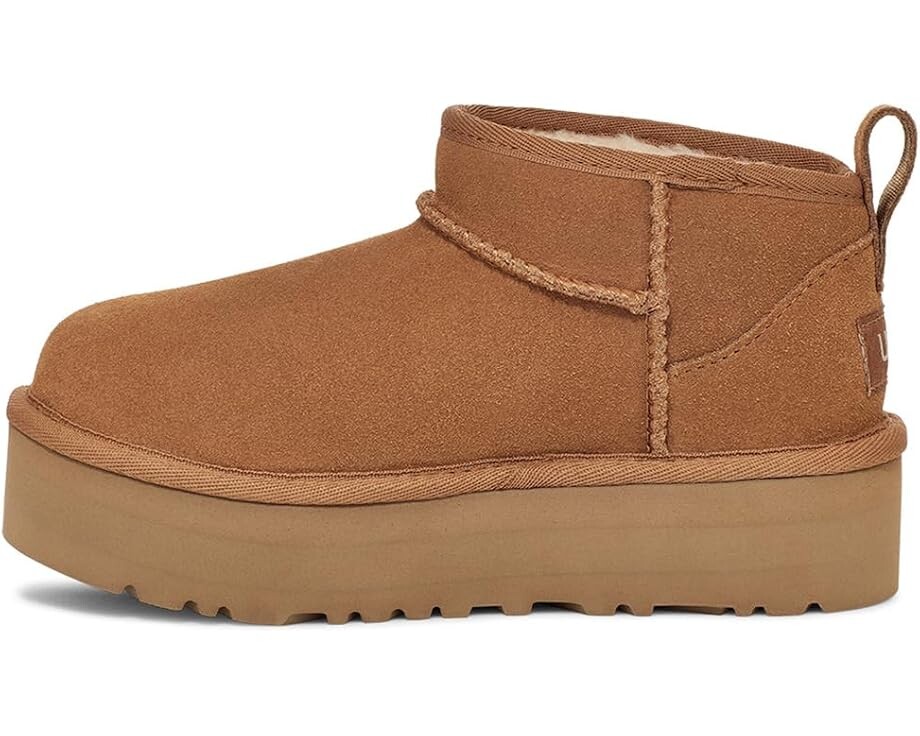 Подарите своим малышам настоящее ощущение уюта с помощью мини-платформы UGG Kids Classic Ultra. Мини-версия любимой женской классики. Эти ботинки обеспечивают непревзойденный комфорт благодаря фирменным двойным швам и платформе. Эти ботинки полностью на подкладке из смеси шерсти UGGplush с переработанной шерстью и подкладкой из лиоцелла TENCEL подарят маленьким ножкам роскошь. Стелька из пеноматериала и межподошва из этиленвинилацетата обеспечивают поддержку, а задняя петля обеспечивает легкое надевание и снимание для детей в дороге.