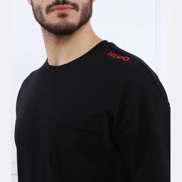 Лонгслив с надписью стандартной посадки. Hugo, черный