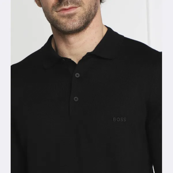 Шерстяная рубашка-поло стандартного кроя Boss, черный