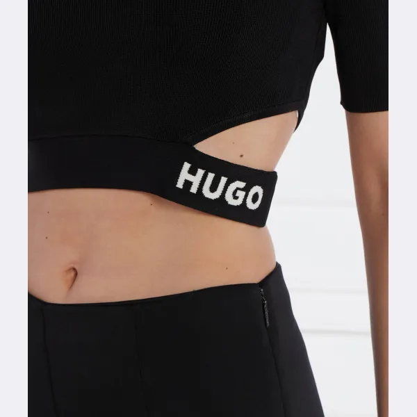 Укороченный атласный свитер Hugo, черный