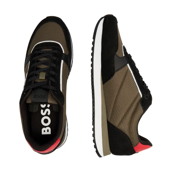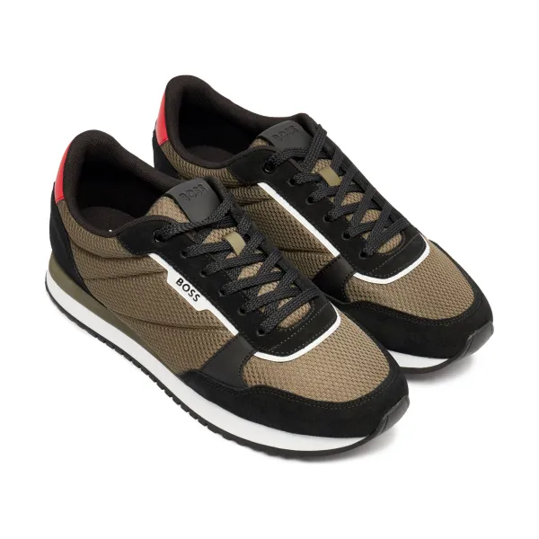 Кроссовки Kai_runn_mesd с добавлением кожи Boss, хаки