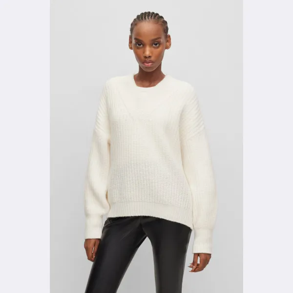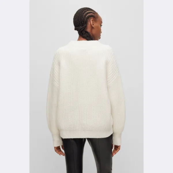 Свитер оверсайз из шерсти сезамии Hugo, белый
