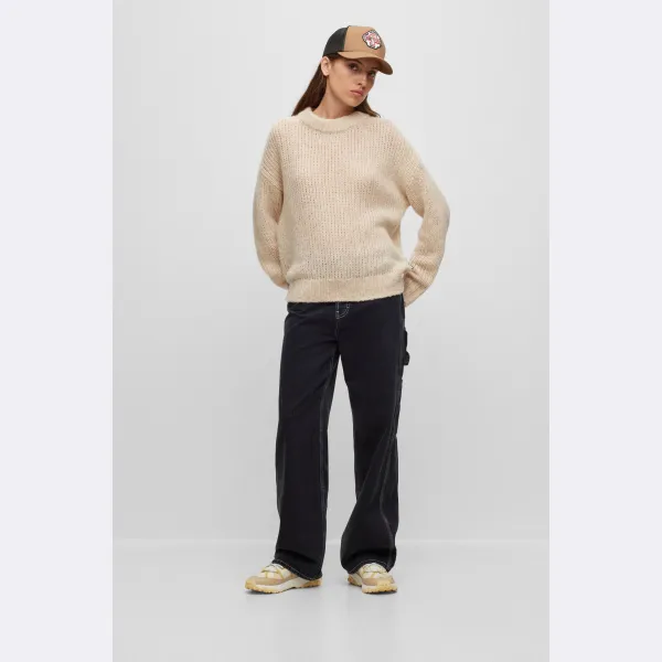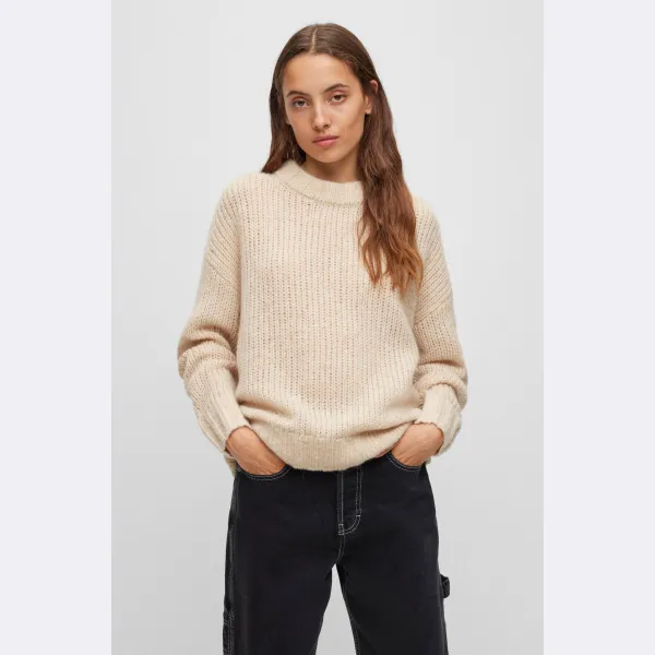 Шерстяной свитер свободного кроя Hugo, бежевый