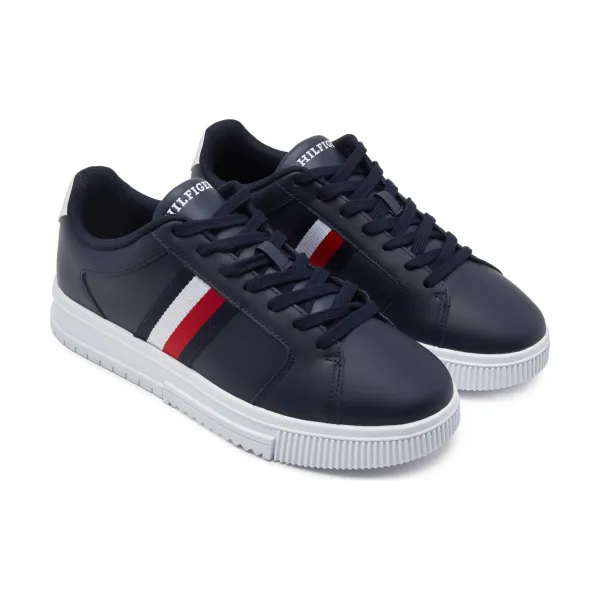 Кожаные кроссовки в полоску ess Tommy Hilfiger, черный