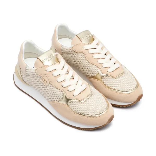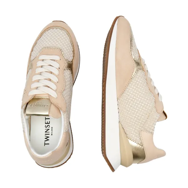 Беговые кроссовки из ткани с добавлением кожи Twin-Set, бежевый