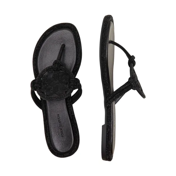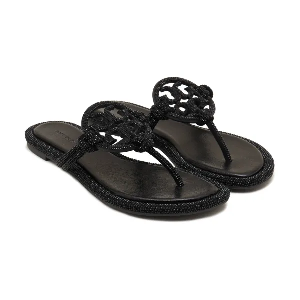 Шлепанцы Miller из кожи паве с узлом Tory Burch, черный 35 034₽