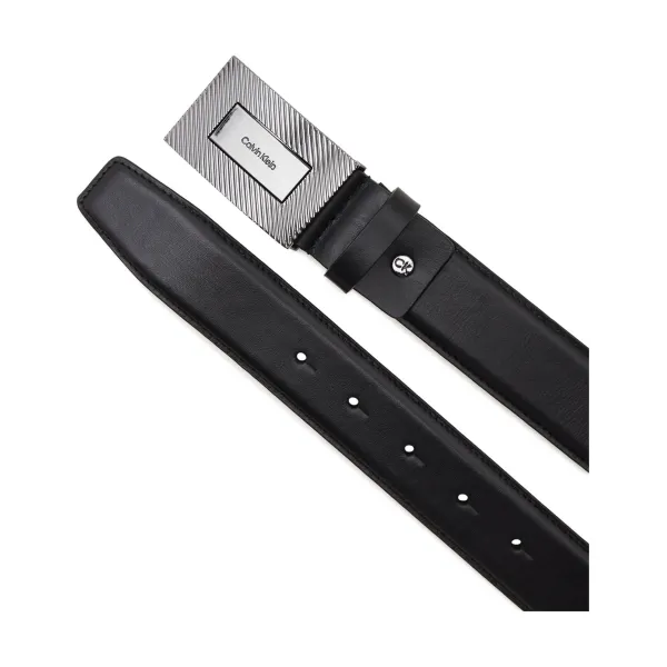 Кожаный ремень с официальной бляшкой Calvin Klein, черный