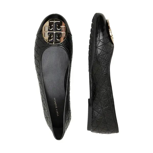 Стеганые кожаные балетки Claire Tory Burch, черный