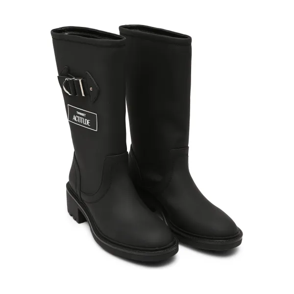 Байкерские ботинки с добавлением кожи. Actitude_Twinset, черный