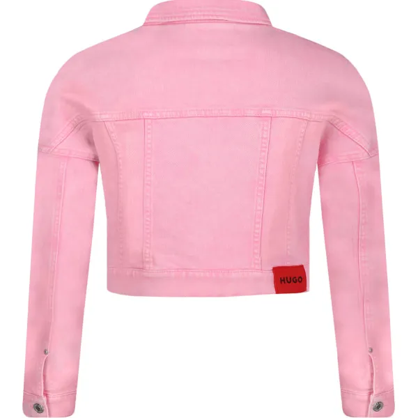 Укороченная джинсовая куртка Hugo, розовый