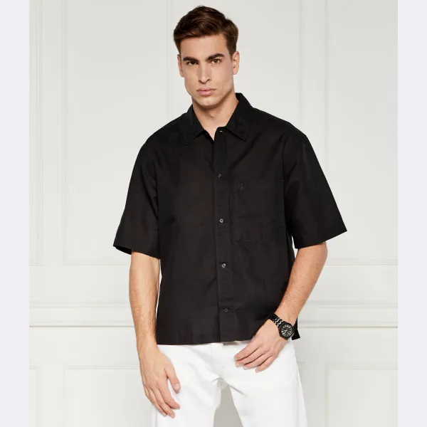 Льняная рубашка свободного кроя Calvin Klein, черный