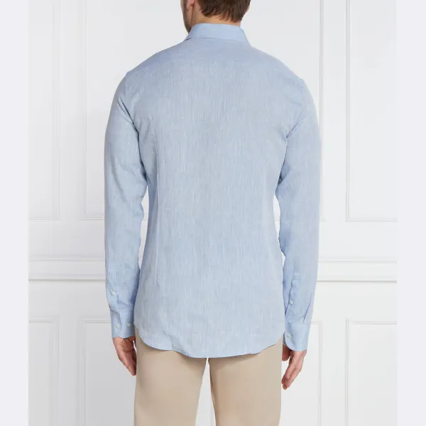 Льняная рубашка узкого кроя h-hank Boss, синий