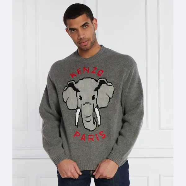 Шерстяной свитер комфортного кроя Kenzo, серый