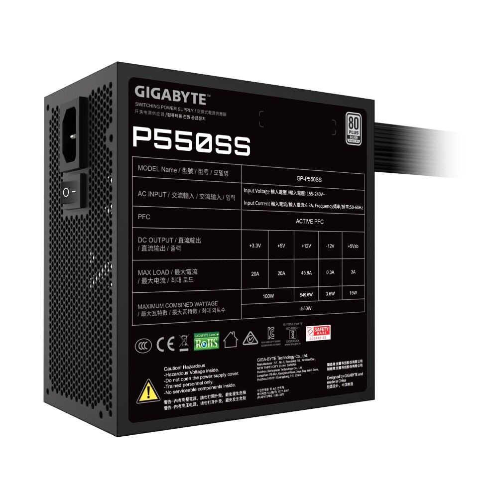 Ключевыми особенностями блока питания GP-P550SS ICE являются сертификация 80 PLUS Silver с КПД 90%, 120-мм вентилятор с гидродинамическим подшипником (FDB), поддержка ATX 3.0, схемы защиты OVP/OPP/SCP/UVP/OCP/OTP и компактный дизайн. Номинальная мощность модели составляет 550 Вт, мощность по линии 12 В достигает 549.6 Вт.