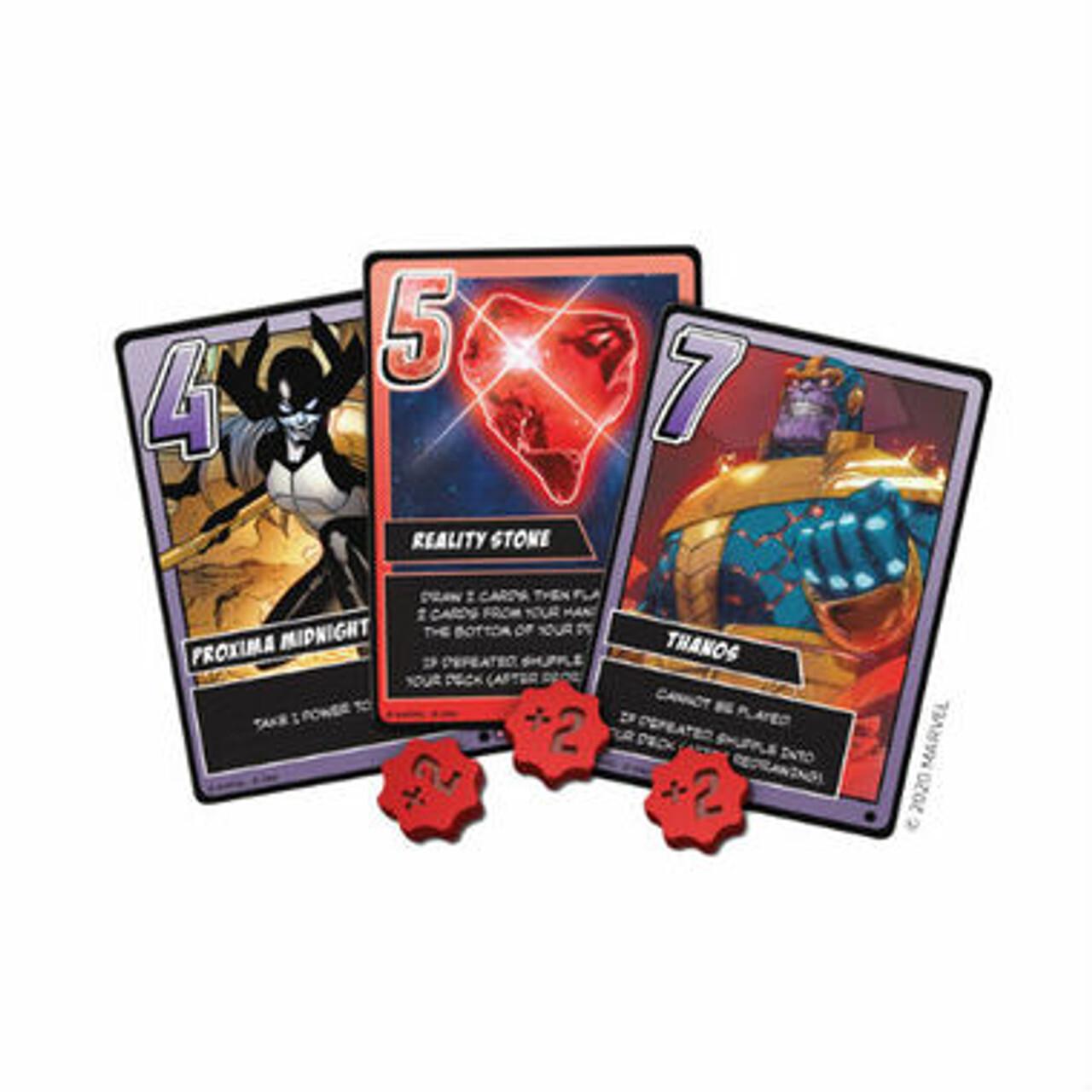 Это быстрая карточная игра на риск и дедукцию, основанная на любимой игре Love Letter и действие которой происходит во вселенной Marvel, для 2–6 игроков. Один игрок — сам Безумный Титан, пытающийся собрать Камни Бесконечности, чтобы подчинить вселенную своей воле, в то время как 1–5 других игроков собирают героев, чтобы остановить Таноса, прежде чем он достигнет абсолютной силы!