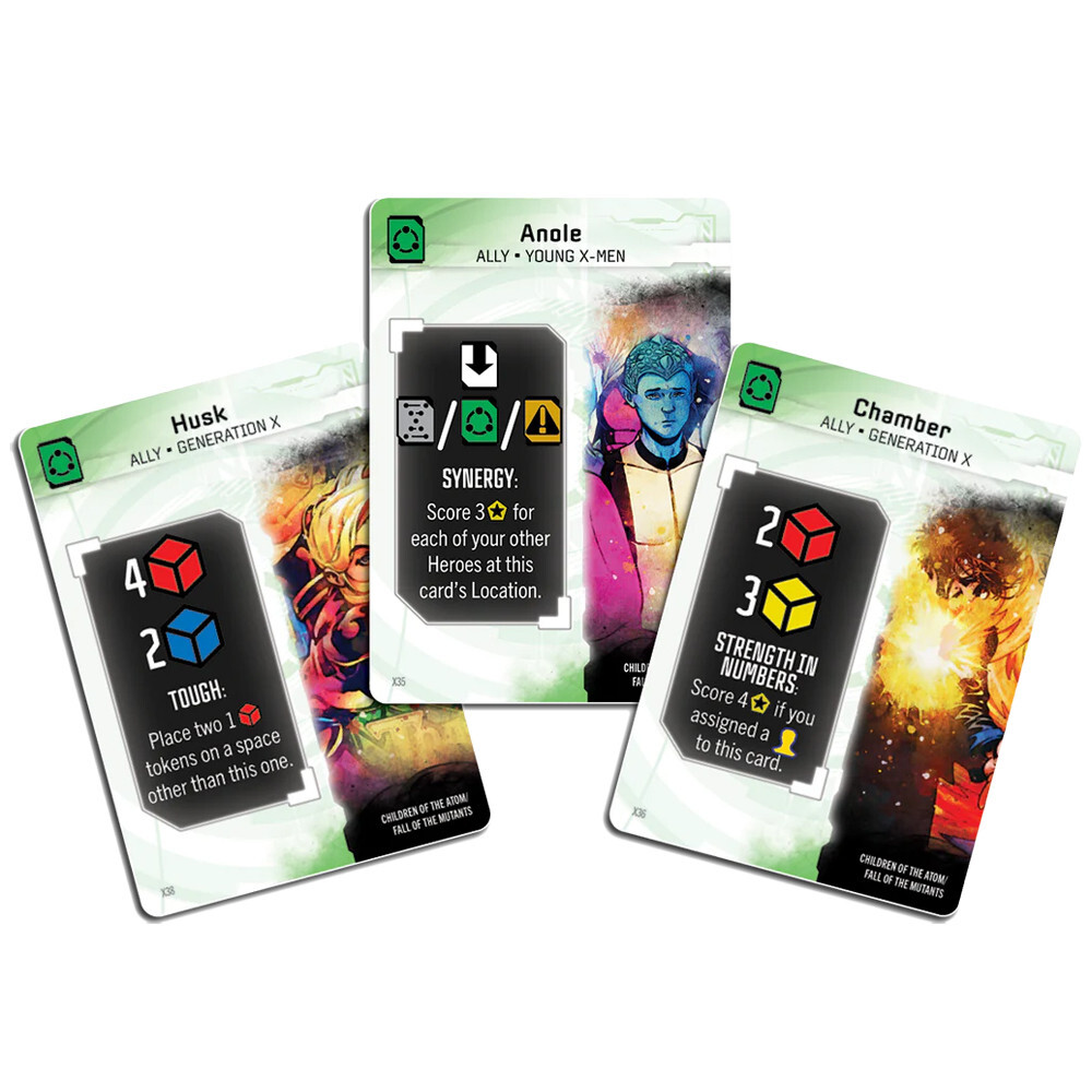 Карты и игровые поля имеют великолепные художественные эффекты сказочного пейзажа, как будто могущественный телепат видит их через Cerebro, и представлены герои игроков. набором ярких полноцветных акриловых подставок. В состав команд входят любимцы фанатов, такие как Росомаха и Джубили, Джин Грей и Циклоп, Кузница и Шторм и многие другие!