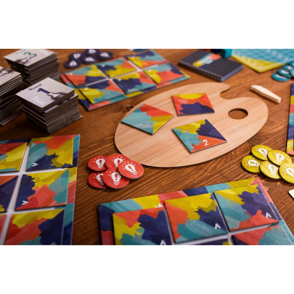 Пришло время нарисовать свой шедевр! Выбирайте плитки с красками и добавляйте их на холст, создавая три красивые абстрактные картины в этой игре для 2–4 игроков. Сопоставляйте цвета на плитках, чтобы набирать очки и создавать эти потрясающие произведения искусства.