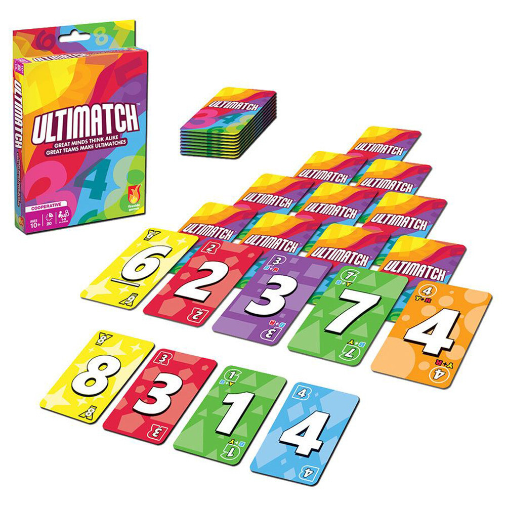 Составляйте умные совпадения по номерам или цветам. Вы будете использовать 1 карту или 2? Сложение или вычитание? Смешать цвета (желтый + синий = зеленый)? Рискнете ли вы картой сейчас или сохраните ее на потом? Сможете ли вы угадать, какая карта нужна другому игроку? Составьте идеальное совпадение по количеству и цвету, чтобы почувствовать острые ощущения и получить награды Ultimate Match!