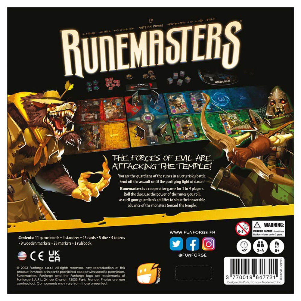 Каждый ход появляются новые монстры (карты). ) появляется на доске и продвигается к храму. В свой ход Мастера рун бросают четыре уникальных кубика и комбинируют их результаты различными способами, чтобы атаковать врагов, перемещаться по храму, препятствовать продвижению монстров, использовать свои индивидуальные способности или вызывать мощные разовые эффекты.