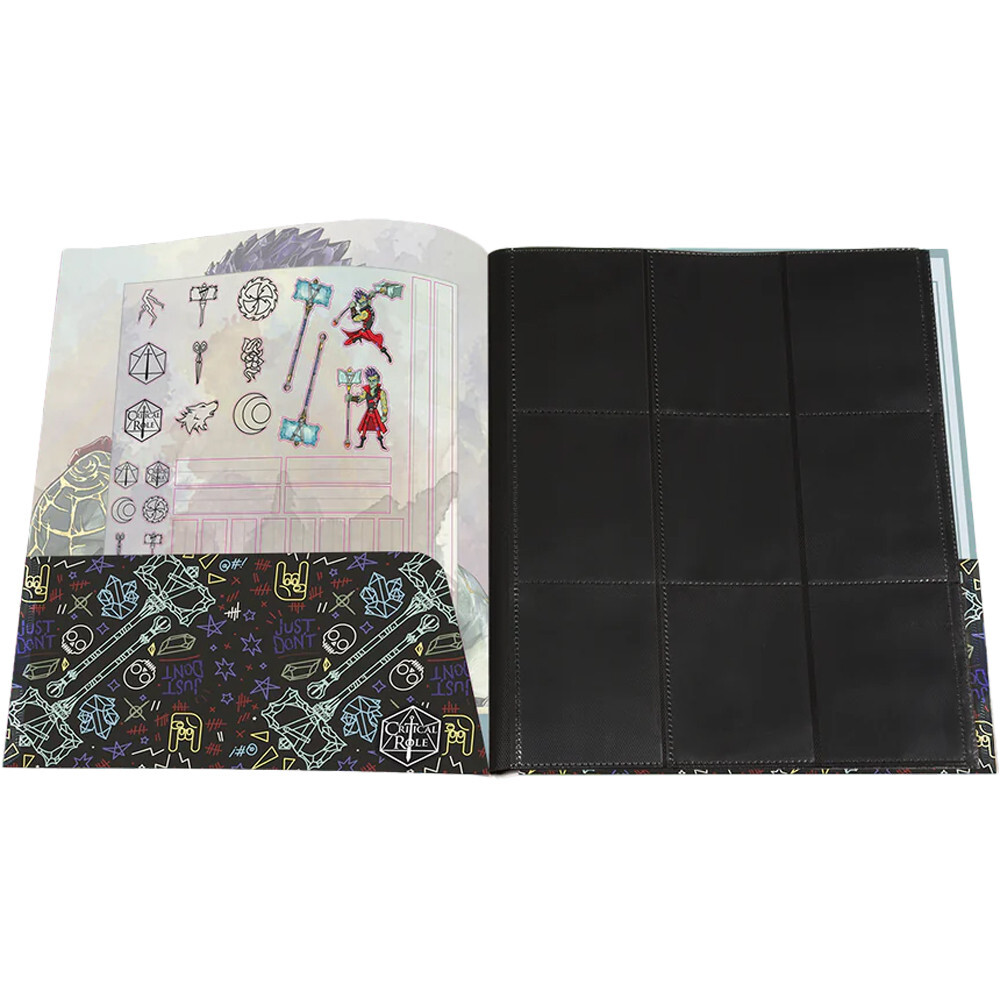 Упорядочивайте и храните свои заметки, листы персонажей и карты заклинаний в RPG Folio for Critical Role! Каждый фолио имеет яркую полноформатную обложку и внутренние карманы, в том числе 10 страниц с одним карманом для листов персонажей и заметок, а также две страницы с 9 карманами для спелл-карт стандартного размера 2,5 дюйма (6,3 см) x 3,5 дюйма (8,8 см).