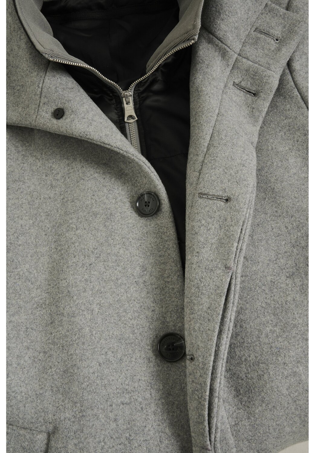 Внешний материал: 50% шерсти, 45% полиэстер, 5% 25 других волокон. Наполнитель: 100% полиэстер. Наполнитель: 100% полиэстер. Внешний материал внутренней куртки: 100% полиэстер. Инструкции по уходу: Не сушить в стиральной машине, сухая чистка, не мой