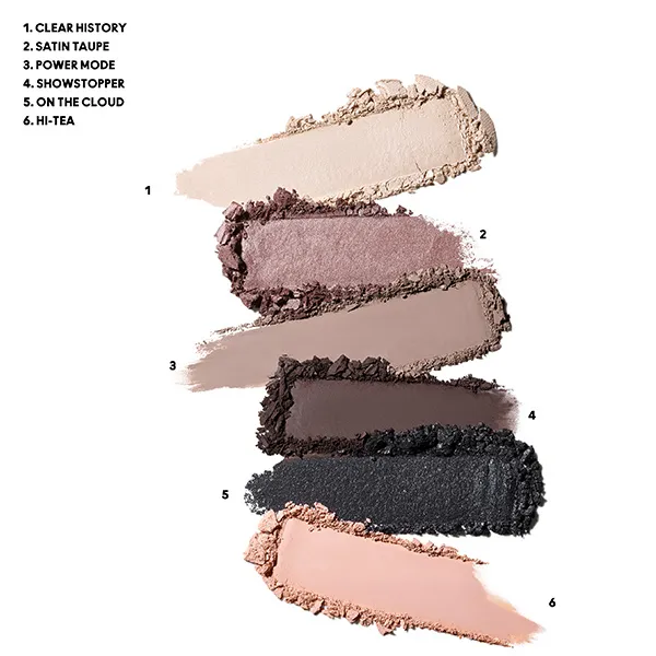 Эта шестицветная палетка теней в дымчатой гамме благодаря однослойной насыщенности пигментов позволяет создавать как очень нежные, так и яркие образы. В ней представлена комбинация матовых и металлических оттенков с лёгкой, шелковисто-гладкой текстурой в четырёх вариантах отделки: матовой, мерцающей, блестящей и металлической. Уникальная формула обеспечивает простое нанесение, помогая с лёгкостью формировать сложные, многослойные и растушёванные эффекты.