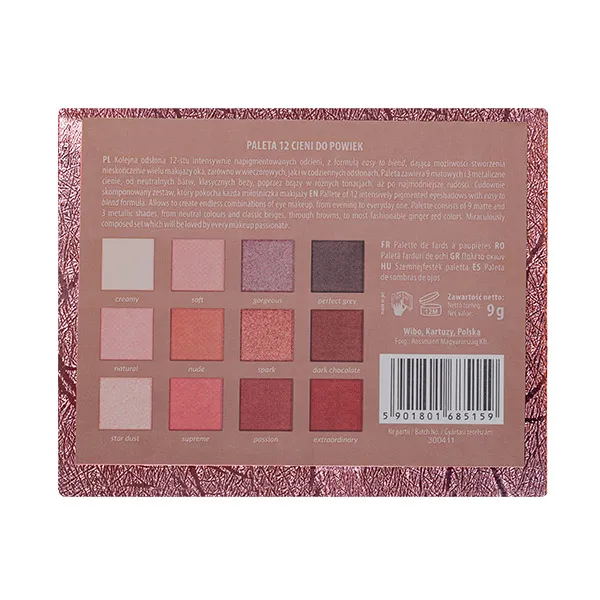 Палитра из 12 интенсивно пигментированных теней с легко смешиваемой формулой для безграничных возможностей макияжа глаз, как для вечеринки, так и для повседневной обстановки. Палитра содержит 9 матовых теней и 3 металлических оттенка: от нейтральных тонов, классических бежевых, через коричневые тона и до последних хитов: красноватых. Невероятное сочетание, которое понравится всем любительницам макияжа. Позвольте себе увлечься множеством возможностей.