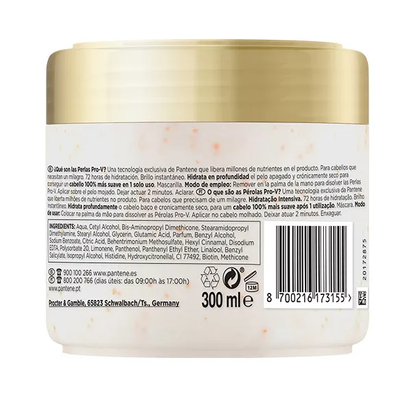 Откройте для себя интенсивную биотиновую маску Pantene, которая глубоко увлажняет сухие и поврежденные волосы. Наша уникальная маска делает волосы обновленными и свежими, на 100% более мягкими и гладкими. Эта инновационная формула обогащена биотином и более чем 5000 концентрированными шариками Pro-V Nutri, которые мгновенно растворяются в волосах. Благодаря эксклюзивной технологии Pantene жемчужины Pro-V Nutri мгновенно доставляют питательные вещества. Эта процедура глубоко воздействует на сухие волосы, смягчает кутикулу и придает волосам здоровый блеск. Всего за 2 минуты ваши волосы будут мягкими на срок до 72 часов.