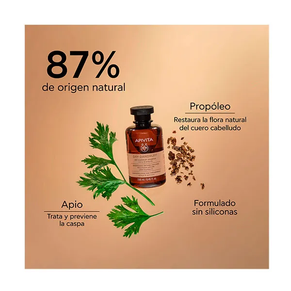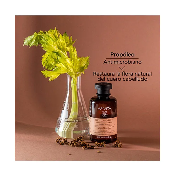 Шампунь от сухой перхоти с сельдереем и прополисом:&бык;Мягко очищает кожу головы, сохраняя ее естественную флору, с помощью мягких очищающих веществ.&бык;Эффективно борется с сухой перхотью и предотвращает ее повторное появление благодаря экстракту семян сельдерея. &бык;Тонизирует кожу головы и устраняет шелушение благодаря действию противомикробного экстракта прополиса и эфирного масла чайного дерева. органический.&бык;Увлажняет и снимает зуд с медом, сельдереем и органическим эфирным маслом лаванды. &бык;Предотвращает ломкость и сечение кончиков, защищая волосы от внешних факторов (загрязнение воздуха, средства для термической укладки) благодаря комплексу APISHIELD SH. Вода в этой формуле заменена тонизирующим и омолаживающим настоем органического греческого розмарина.