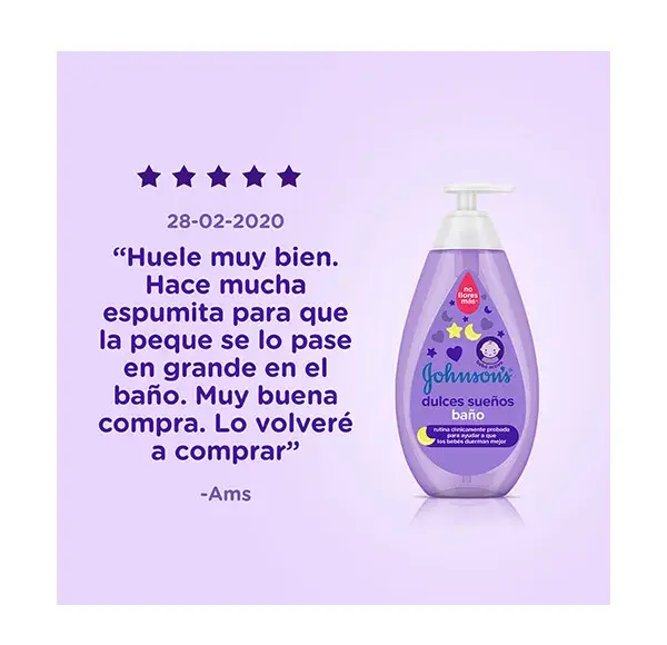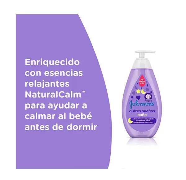 Гель для ванн Johnson's Baby Sweet Dreams для детей и младенцев помогает успокоить ребенка перед сном, поскольку обогащен расслабляющими эссенциями NaturalCalm. Этот продукт был протестирован экспертами по детскому сну и разработан дерматологами, является гипоаллергенным и сбалансированным по уровню pH, что делает его пригодным для ежедневного использования. Гель для ванны Sweet Dreams не содержит красителей, фталатов и сульфатов и имеет формулу No Cry More, которая предотвращает появление слез и щадит глаза, поэтому купание станет приятным занятием. Этот продукт мягко очищает кожу от грязи и загрязнений, защищая ее от сухости, а его формула, как клинически доказано, помогает вашему ребенку спать. Сон ребенка влияет на отдых родителей, поэтому трехэтапная процедура, состоящая из геля для ванн, шампуня и лосьона линии Dulces Sueños, оптимальна для того, чтобы малыши расслабились и смогли заснуть.