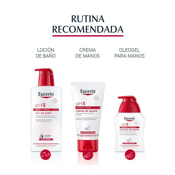Продукция Eucerin pH5 подходит для частого использования на склонной коже. к аллергии 1 типа, такой как аллергический ринит. Прежде чем наносить новый продукт на все тело, проведите небольшой тест, несколько раз нанеся его на кожу внутренней стороны локтя.