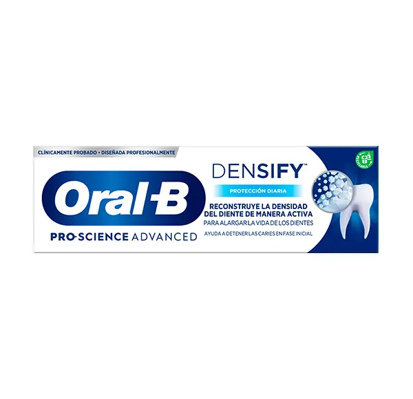 Зубная паста Oral-B Pro-Science Densify увеличивает плотность эмали при каждой чистке зубов, поддерживая зубы в хорошем состоянии. Его формула реминерализует поверхность зубов, укрепляя их, и помогает защитить эмаль от потери плотности в будущем.