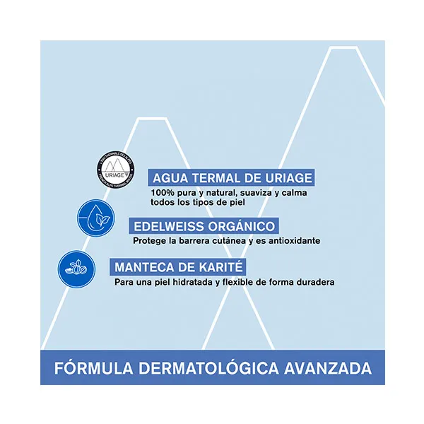 ДЕТСКИЙ КРЕМ ДЛЯ ВАННКИ – БЕЗ МЫЛА. Этот очищающий крем с насыщенной кремовой текстурой бережно очищает и сохраняет гидролипидную пленку. Его формула, включающая натуральный комплекс [Термальная вода Урьяж + Органический Эдельвейс] в сочетании с маслом Ши, оставляет кожу увлажненной. Его новая, более натуральная формула делает этот крем для стирки идеальным для купания ребенка. 1. ОЧИСТКА Мягкая кремовая очищающая основа, не содержащая мыла, с физиологическим pH мягко удаляет загрязнения. 2. ПИТАЕТ И СМЯГЧАЕТ Благодаря новому комплексу [Термальная вода Урьяж + Эдельвейс Био] 1-й; Крем для умывания питает и сохраняет гидролипидную пленку ребенка. делая кожу мягкой и эластичной. БИОРАЗЛАГАЕМАЯ ФОРМУЛА И НАТУРАЛЬНОЕ ПРОИСХОЖДЕНИЕ ЭКОЛОГИЧНАЯ УПАКОВКА