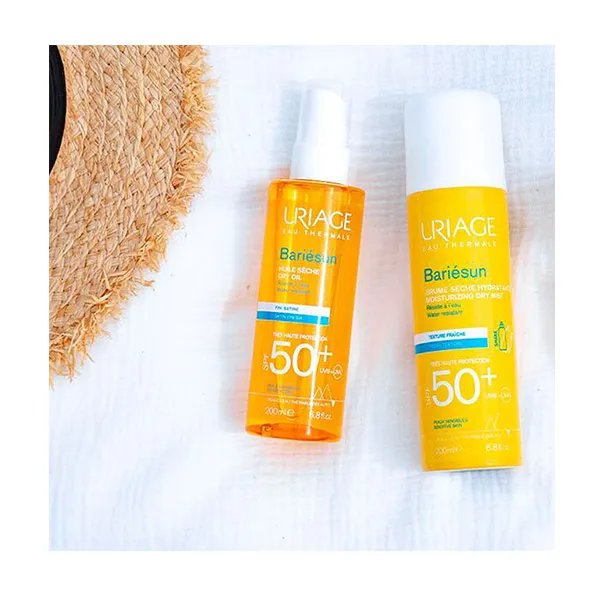 Bariesun сочетает в себе высокоэффективный комплекс фильтров и свойства термальной воды Uriage, защищающие кожу и предотвращающие повреждение клеток, вызванное лучами UVA и UVB. Система непрерывного распыления позволяет легко наносить его даже на влажную кожу. особенно подходит для активного отдыха благодаря своему ультра-освежающему эффекту. Этот солнцезащитный продукт гарантирует высокую безопасность, высокую переносимость и быстро впитывается. Защищает от УФ-лучей. Комплекс фильтров обеспечивает очень высокую защиту от лучей UVA и UVB, а также свободных радикалов. Оптимизирует фотозащиту. Патент [BARIESUN] образует на коже защитную пленку, которая помогает ограничить проникновение УФ-фильтров на поверхность эпидермиса и оптимизировать фотозащиту. Предотвращает сухость кожи. Этот ультралегкий спрей, обогащенный акваспонгинами и термальной водой Урьяж, защищает от сухости кожи. ЭКОЛОГИЧЕСКИЙ ПОДХОД.