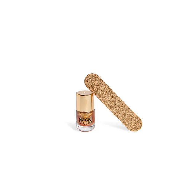 В этот прекрасный подарок входит лак для ногтей с золотыми блестками и пилочка для блестящего, блестящего и модного маникюра.