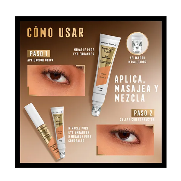 Откройте для себя усилитель для глаз Miracle Pure от Max Factor: он снимает усталость, осветляет и корректирует цвет темных кругов. Содержит основу для ухода за кожей, содержащую кофеин и витамин С для сияния глаз. Тонированная корректирующая сыворотка снимает усталость, легко трансформирует и борется с темными кругами. С клинически доказанными долгосрочными результатами. Массажный аппликатор легко скользит, распределяя продукт по нежной зоне под глазами. Его формула веганская, легкая и удобоукладываемая, она идеально сочетается с кожей, комфортна и смягчает мимические морщинки вокруг глаз. Начните свой утренний распорядок с нанесения тонированной корректирующей сыворотки отдельно или слоями. Ваш новый фаворит от Max Factor для создания завершенного образа.