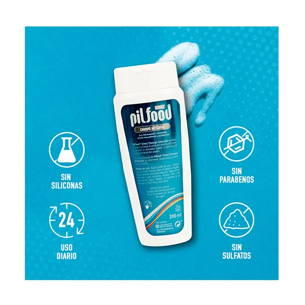 Шампунь против выпадения волос Pilfood Direct укрепляет волосы и улучшает их прилегание к коже головы благодаря новой формуле на основе: Pro-Anagex: эксклюзивного активного ингредиента Pilfood Direct, который помогает предотвратить выпадение волос, а также увеличить плотность капилляров и замедляет старение волос. Мультивитаминный комплекс растительного происхождения, оказывающий восстанавливающее действие на ломкие и/или поврежденные волосы благодаря содержанию кератина и биотина, комбинации компонентов, глубоко увлажняющих волосы. Формула Direct Anti-Hair Loss очень бережно относится к волосам – SYNDET – pH5 – БЕЗ ПАРАБЕНОВ – БЕЗ СУЛЬФАТОВ – БЕЗ СИЛИКОНА.