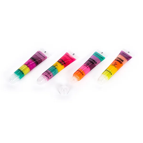 В него входят четыре блеска для губ с эффектом радуги, после смешивания оттенков они выглядят красиво.