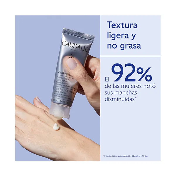 Созданный специально для рук крем для рук Vinoperfect Anti-Stain Hand Cream заметно размывает темные пятна, предотвращает их появление и питает руки, не оставляя жирного блеска. Его кремовая текстура, тонкая и кремовая, окутывает кожу ощущением полного комфорта.