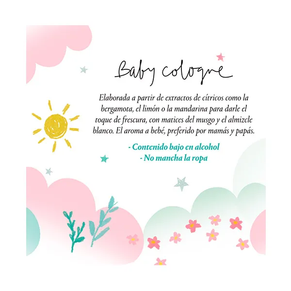 СУАВИНЕКС ДЕТСКАЯ КОЛОНИЯ Запах и обоняние очень важны в первые месяцы жизни ребенка. С самого рождения у младенцев начинает развиваться обонятельная память, которая необходима для создания приятной связи с окружающей средой. Унисекс-детский одеколон Suavinex несет в себе ноты цитрусовых, белых цветов и мускуса. - Низкое содержание алкоголя. - Не пачкает одежду.