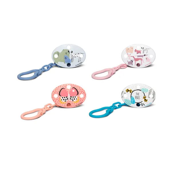 SUAVINEX ОВАЛЬНАЯ БРОШЬ-КЛИПС Брошь, которая позволяет прикрепить соску к одежде ребенка, не позволяя ей упасть на пол, испачкаться или потеряться. Очень удобно и практично. *Существует несколько моделей. Они будут отправлены в соответствии с наличием на складе.
