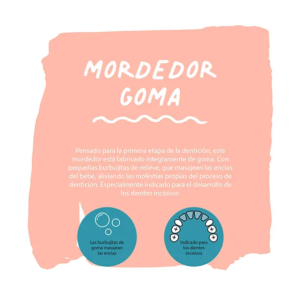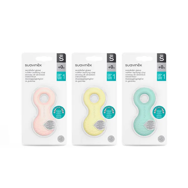 Резиновые прорезыватели Suavinex Stage 1 идеально подходят для новорожденных. Показан для резцов. С резиновыми пузырьками, массирующими десны. Перед использованием промойте водой с мылом. Холодная стерилизация. Не кипятить. Состав: ТПЭ. Познакомьтесь с нами: Мы — Suavinex, компания, специализирующаяся на уходе за детьми и матерями. Мы производим всю нашу продукцию с большой заботой и любовью, поэтому мы являемся синонимом безопасности и доверия.
