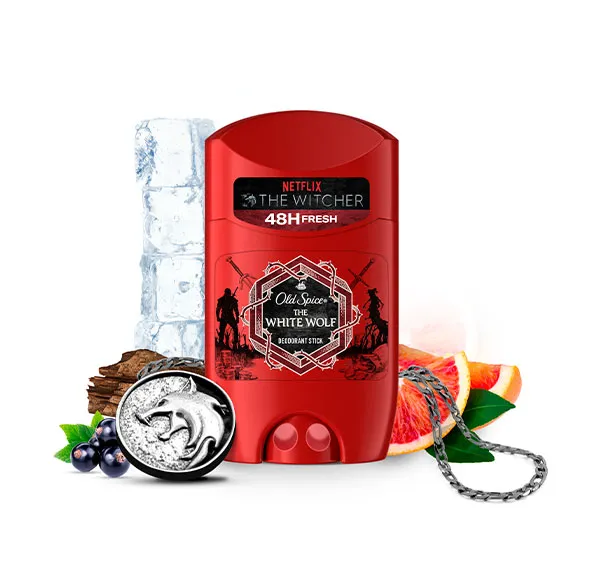 Во времена Ведьмака, давным-давно, не было Old Spice, поэтому запах тела исходил от всех. Кто бы мог подумать, что дикий аромат «Белого волка» сможет противостоять социально неприемлемому запаху? Представляем дезодорант-стик Old Spice Whitewolf, ограниченный выпуск небесно-инфернального аромата, вдохновленный миром Ведьмака. Гель для душа Old Spice обладает бодрящим ароматом, созданным для мужчин и ночных существ, которые не боятся своей мужественности (или гелей для душа).