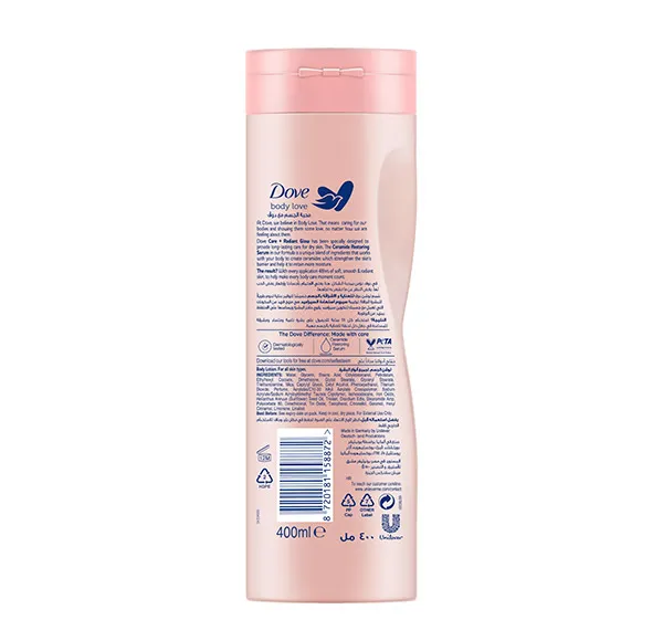 Лосьон для тела Dove Care Glow придает вашей коже сияющее сияние и увлажнение на срок до 48 часов. Благодаря натуральным минералам, которые усиливают блеск, этот лосьон для тела придает коже сияние с момента нанесения. Натуральные минералы осветляют тон вашей кожи, придавая ей великолепное сияние. Если вы используете его как часть ежедневного ухода за собой, вы заметите сияющую кожу, которая выглядит и чувствует себя прекрасно напитанной. Просто нанесите лосьон для сияния на все тело и позвольте природным минералам, усиливающим сияние, сделать свое дело. Для достижения оптимальных результатов наносите лосьон для тела Dove на кожу после душа или ванны, чтобы удержать влагу. Ежедневное использование после душа помогает питать кожу и предотвращать чрезмерную потерю влаги в течение дня. Dove предлагает специальный уход для всех типов кожи. Вся продукция проходит дерматологическое тестирование. Голубь стремится к истинной красоте и работает над тем, чтобы предоставить женщинам во всем мире превосходный уход. Повысьте уровень увлажненности вашей кожи благодаря Dove! Информация, представленная на веб-сайте, может отличаться от информации, указанной на маркировке продукта. Пожалуйста, всегда проверяйте маркировку продукта.