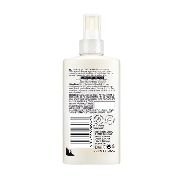 Для оживленных и объемных волос. Уплотняющий спрей идеально подходит для тонких и слабых волос. Укрепляет и уплотняет волосы на 200%. Мягкая и легкая формула придает волосам естественное движение. Кроме того, он содержит термозащиту до 220°C. Благодаря биотину и гиалуроновой кислоте волосы становятся более густыми, густыми и сильными с первого применения. Никакого силикона. Подходит для веганов, не содержит ингредиентов животного происхождения и не тестировался на животных. Результаты получены при использовании шампуня, кондиционера и спрея PROfiller+.